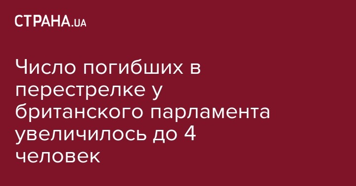 Количество погибших в перестрелке у британского парламента в Лондоне выросло до четырех. Об этом сообщает The Guardian.