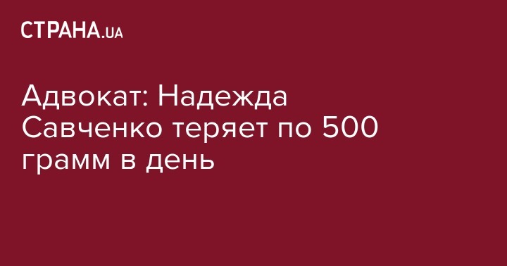 Потеря веса украинской летчицей Надеждой Савченко составляет 400-500 грамм в день. Об этом на своей странцие в Facebook сообщил адвокат Савченко Николай Полозов.