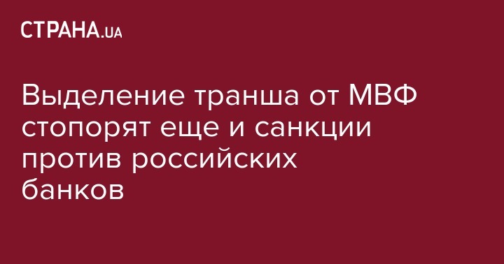 Переговорный процесс между Киевом и руководством МВФ о выделении транша затруднен не только из-за блокады Донбасса, но теперь еще и из-за введенных санкций против российских госбанков и блокирования работы их отделений в Украине. Об этом пишут "Украинские новости" со ссылкой на несколько источников в органах украинской власти.