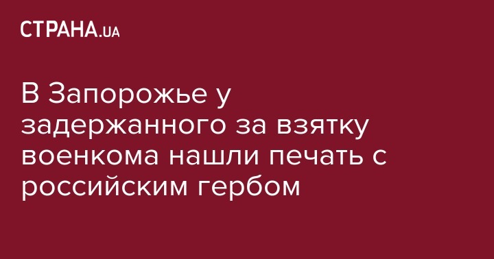 В Запорожье у задержанного за взятку военкома нашли печать с российским гербом