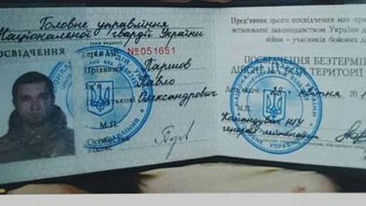 Павел Александрович Паршов 1988 года рождения, уроженец Севастополя, проживавший в Днепре. На месте убийства Вороненкова была найдена барсетка Паршова, а в ней - две выписки из приказа. В первой, датированной августом 2015 года, говорится о зачислении в списки личного состава в/ч 3057 Национальной гвардии Украины. Во второй (август 2016 года) - об исключении из списков личного состава и снятии с довольствия.
