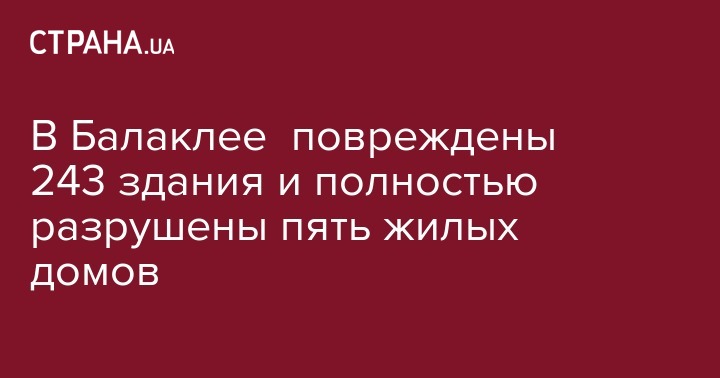 В Балаклее повреждены 243 здания, пять частных жилых домов разрушены. Об этом сообщает вице-премьер-министр - министр регионального развития, строительства и ЖКХ Геннадий Зубко на своей странице в Facebook.