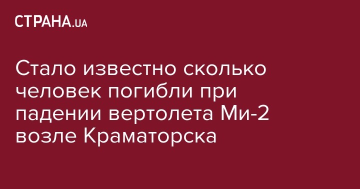 По словам пресс-секретаря Министерства обороны Украины Оксаны Гаврилюк, вследствие падения военного вертолета возле Краматорска погибли трое членов экипажа и два пассажира.