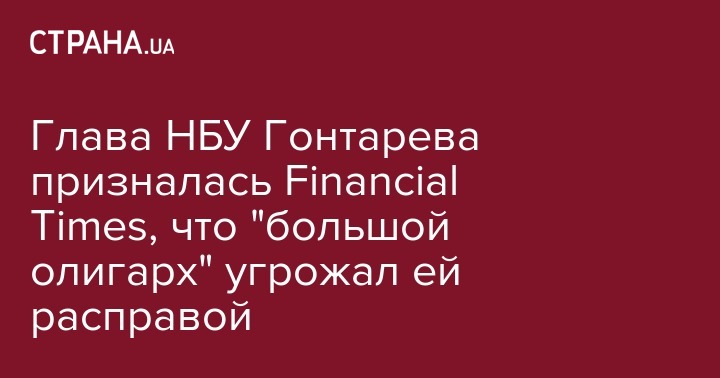 Глава Нацбанка Валерия Гондарева сообщила об угрозах со стороны влиятельного олигарха и невероятном давлении противников, чьи интересы она затронула. Об этом она рассказала в интервью изданию Financial Times, сообщает "РБК-Украина".