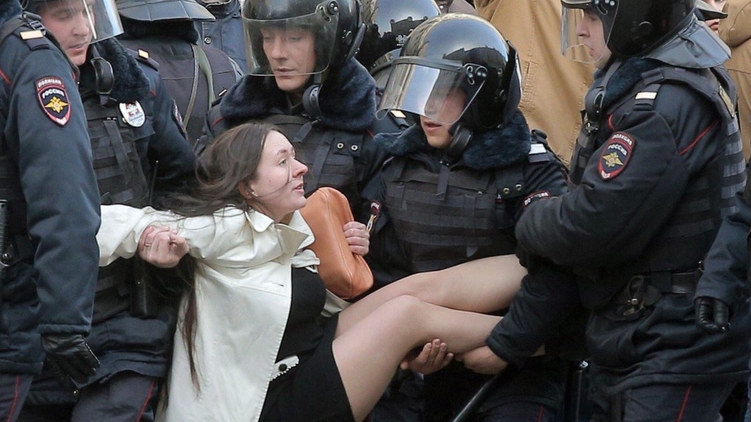 В первый раз полиция лениво зачистила окрестности памятника, когда оппозиционеры прикрепили на постамент несколько плакатов с критикой премьер-министра. Аккуратно задержав пару человек, омоновцы сорвали все лозунги, кроме того, что был прикреплен выше всего. От криков "Позор!" испуганно взлетели голуби с головы Александра Сергеевича. Махнув рукой, стражи порядка ушли, а протестующие снова вернулись к постаменту. Молодежь развернула российский триколор и стала скандировать: "Россия будет свободной". На этот зов снова прибежали омоновцы, и автозаки пополнились возмущенными людьми. Место у постамента заняли новые протестующие.