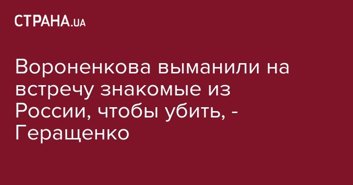 Советник МВД Антон Геращенко заявляет, что экс-депутата Госдумы РФ Дениса Вороненкова специально выманили на встречу, чтобы убить, а номер звонившего уже известен следствию. Об этом Геращенко заявил в интервью российской "Новой газете".