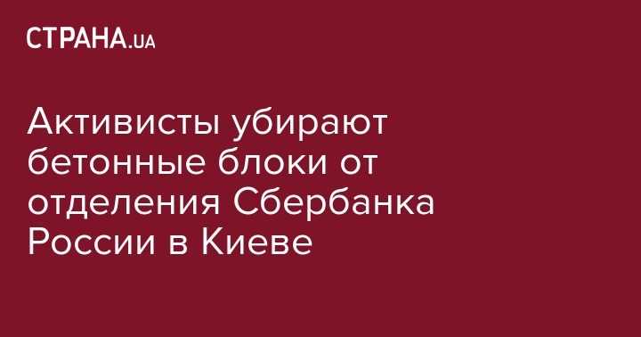 Утром 28 марта активисты разбирают бетонные блоки, которыми раньше замуровали центральное отделение Сбербанка России на ул. Владимирской в Киеве. Об этом сообщает "Интерфакс Украина".