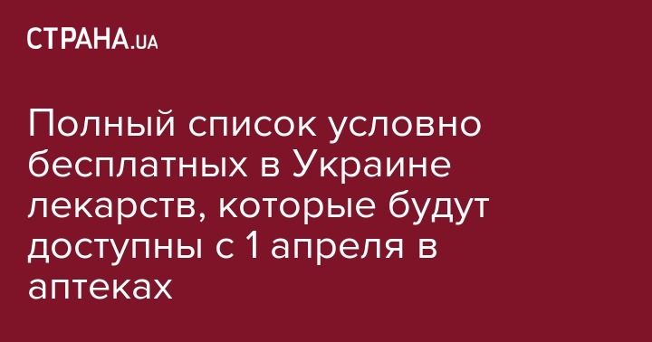 С 1 апреля Министерство здравоохранения Украины предоставляет каждому гражданину получить бесплатно (или с небольшой доплатой) лекарства по трем категориям болезней, программа получила название "Доступные лекарства".