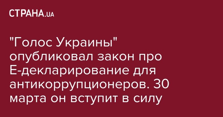 "Голос Украины" опубликовал закон про Е-декларирование для антикоррупционеров. 30 марта он вступит в силу