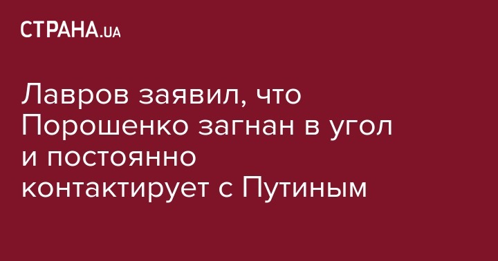 Министр иностранных дел России Сергей Лавров заявил, что президент Петр Порошенко "загнал себя в угол как совершенно безответственный политик", при этом он поддерживает постоянный контакт с президентом РФ Владимиром Путиным. Об этом он сказал в интервью американскому журналу National interest.