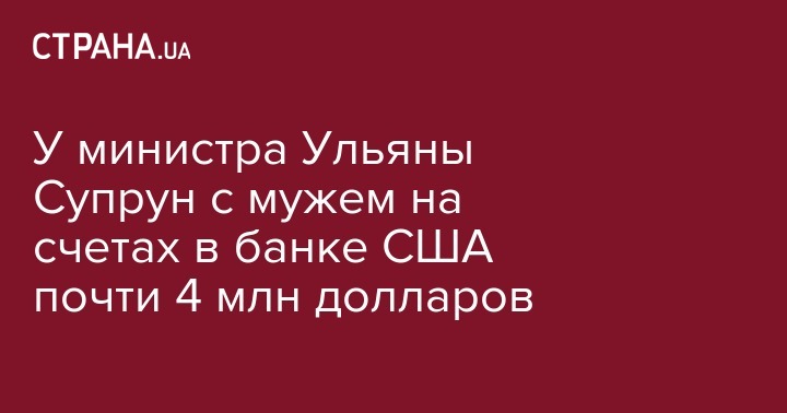 У министра Ульяны Супрун с мужем на счетах в банке США почти 4 млн долларов