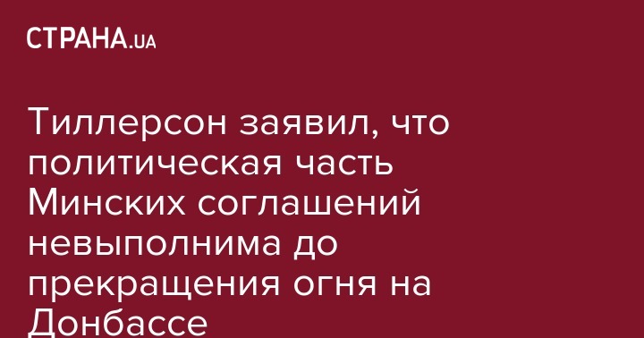 Госсекретарь США Рекс Тиллерсон заявил о том, что выполнение политического блока Минских соглашений невозможно до "необратимого улучшения ситуации с безопасностью на Донбассе".