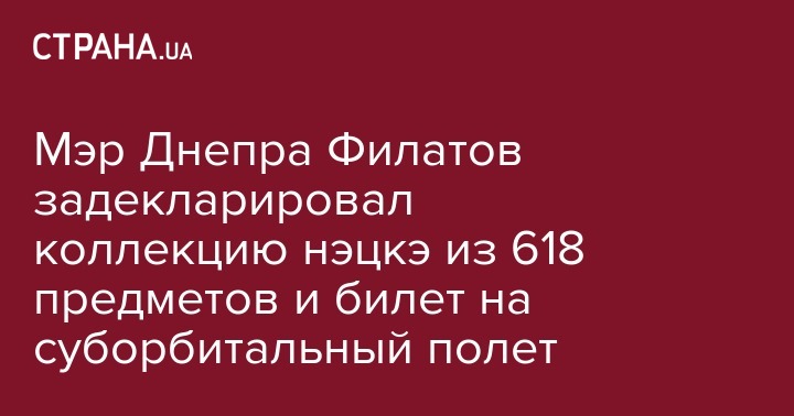 Мэр Днепра Филатов задекларировал коллекцию нэцкэ из 618 предметов и билет на суборбитальный полет