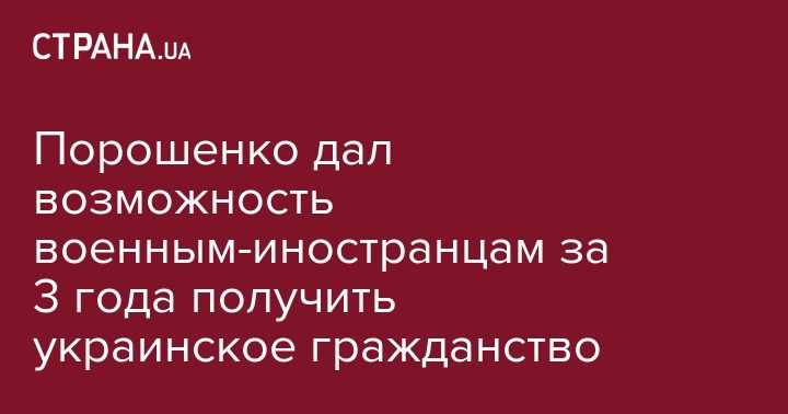 Порошенко дал возможность военным-иностранцам за 3 года получить украинское гражданство