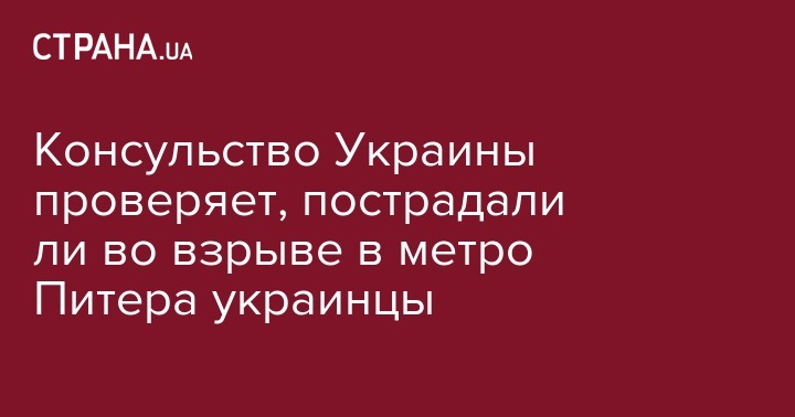 Генеральному консульству Украины в Санкт-Петербурге поручено проверить информацию о том, были  есть ли среди пострадавших во взрыве в метро Санкт-Петербурга граждане Украины.