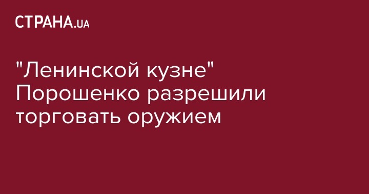 Заводу "Кузница на Рыбальском" (до декоммунизации "Ленинская кузница"), который принадлежит президенту Петру Порошенко, разрешили экспортировать товары военного назначения. Соответствующее постановление № 1068 от 28 декабря 2016 года выдало правительство, передает "Интерфакс-Украина".