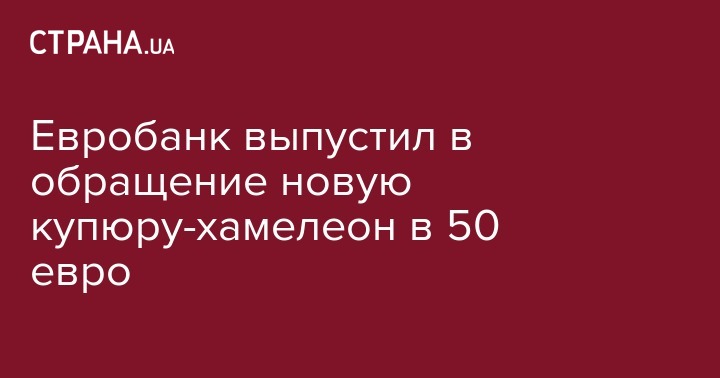 Евробанк выпустил в обращение новую купюру-хамелеон в 50 евро
