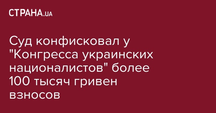 Печерский районный суд Киева постановил конфисковать у политической партии "Конгресс украинских националистов" более 100 тыс. грн взносов, сделанных в поддержку этой партии. Об этом говорится в сообщении на сайте Национального агентства по вопросам предотвращения коррупции.