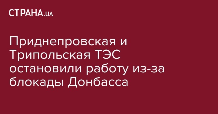Приднепровская и Трипольская ТЭС остановили работу из-за блокады Донбасса