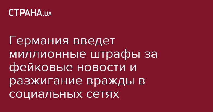 Напомним, еще в начале марта министр юстиции Германии Хайко Маас предложил законопроект с введением миллионных штрафов за посты в соцсетях с разжиганием ненависти и распространением ложных новостей.