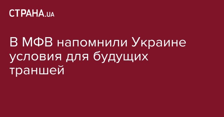 Ранее замглавы Нацбанка Украины Олег Чурий говорил, что Украина рассчитывает получить от МВФ еще два транша на $4,5 млрд до конца года.