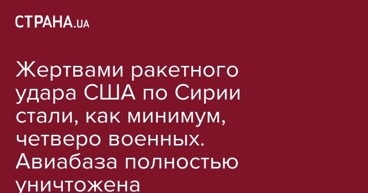 Наблюдатели Сирийского центра мониторинга прав человека сообщили, что в результате ракетного удара погибли 4 сирийских военных, а сама авиабаза почти полностью разрушена.