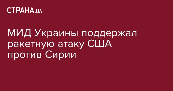 Министерство иностранных дел Украины поддерживает действия США в Сирии для предотвращения совершения военных преступлений в дальнейшем. Об этом говорится в официальном заявлении МИД Украины.