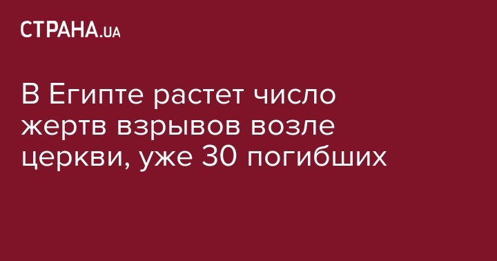 По данным СМИ, при взрыве погибли 30 человек, от 50 до 70 человек получили ранения. Бомба большой мощности была заложена на первом этаже церкви в зале для молящихся, сообщает портал "Дот Маср" со ссылкой на источник в органах безопасности.