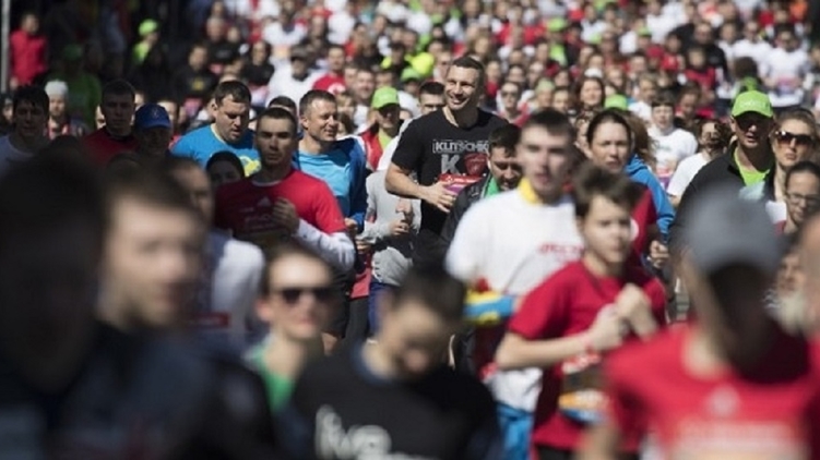 Кличко виднеется из толпы марафонцев, Фото: kievcity.gov.ua