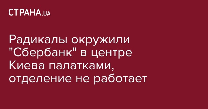 Радикалы окружили "Сбербанк" в центре Киева палатками, отделение не работает