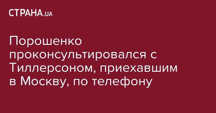 Порошенко проконсультировался с Тиллерсоном, приехавшим в Москву, по телефону