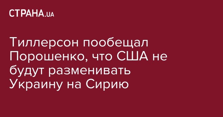 Тиллерсон пообещал Порошенко, что США не будут разменивать Украину на Сирию
