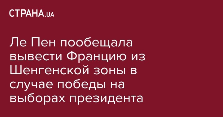 Кандидат в президенты Франции от ультраправой партии "Национальный фронт" Марин Ле Пен заявила, что намерена приостановить участие Франции в Шенгенском пространстве, если победит на грядущих президентских выборах, сообщают во вторник парижские СМИ. Их цитирует "Интерфакс".