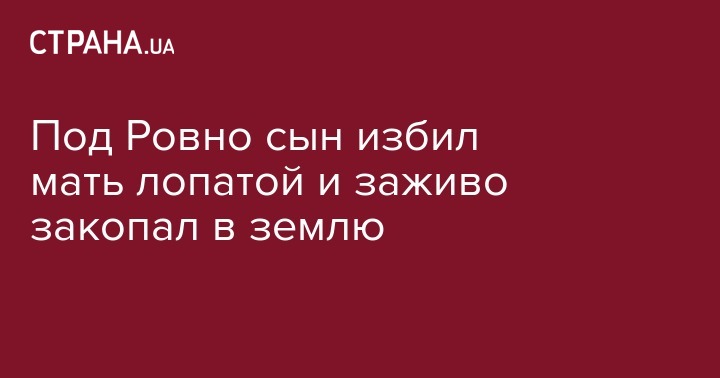 В Ровенской области 40-летний мужчина избил 60-летнюю мать топором и лопатой по голове, а потом заживо закопал ее в землю.  Об этом пишет пресс-служба полиции Ровенской области.