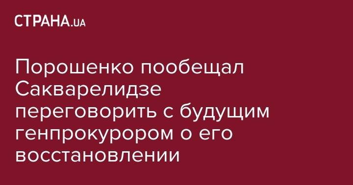 Петр Порошенко намерен обсудить с новым генеральным прокурором восстановление в должностях уволенного вчера заместителя генпрокурора Давида Сакварелидзе и его команды, заявил сам Сакварелидзе в интервью изданию "Новое время"  по итогам встречи с президенто Украины.