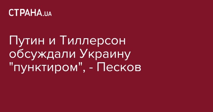 Украинская тема не обсуждалась детально в ходе переговоров президента РФ Владимира Путина с госсекретарем США Рексом Тиллерсоном, заявил пресс-секретарь президента РФ Дмитрий Песков, передают РИА Новости.