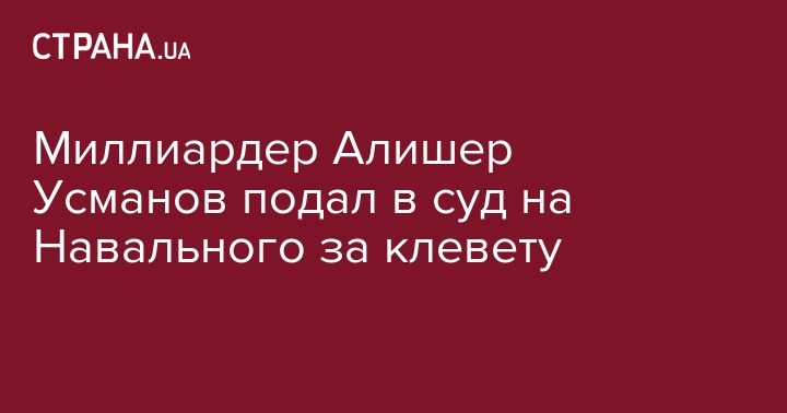 В Люблинский суд Москвы поступил иск миллиардера Алишера Усманова к Алексею Навальному и возглавляемому им Фонду борьбы с коррупцией. Об этом сообщают РИА Новости.