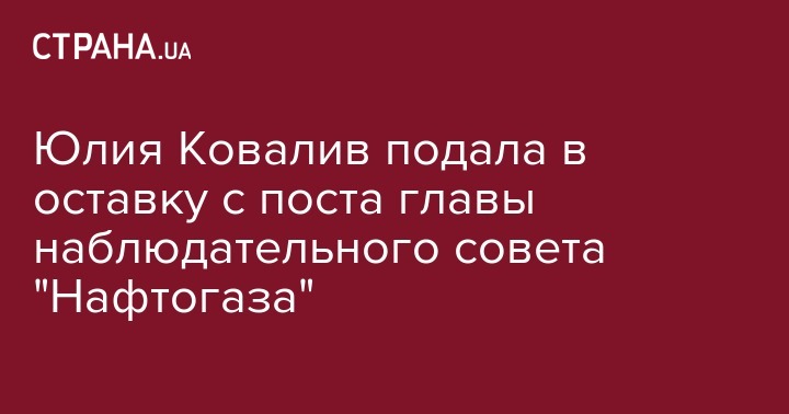 Юлия Ковалив уходит с занимаемой должности председателя наблюдательного совета НАК "Нафтогаз Украины". Об этом сообщает "Экономическая правда" со ссылкой на свои источники в компании.
