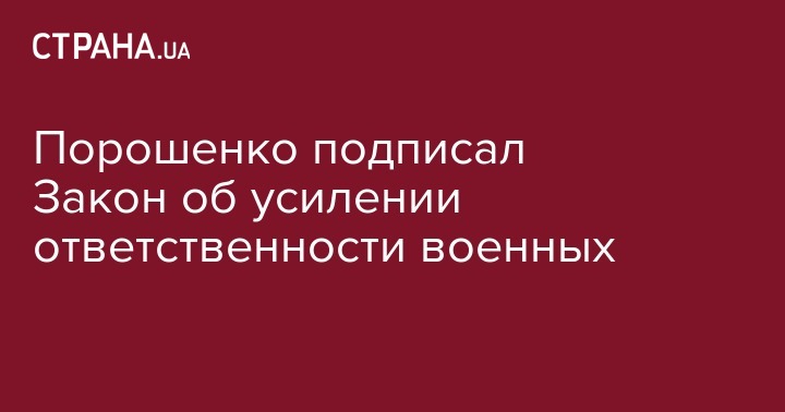 Петр Порошенко подписал закон, который усиливает ответственность военных за дисциплинарные нарушения. Об этом говорится на сайте президента.