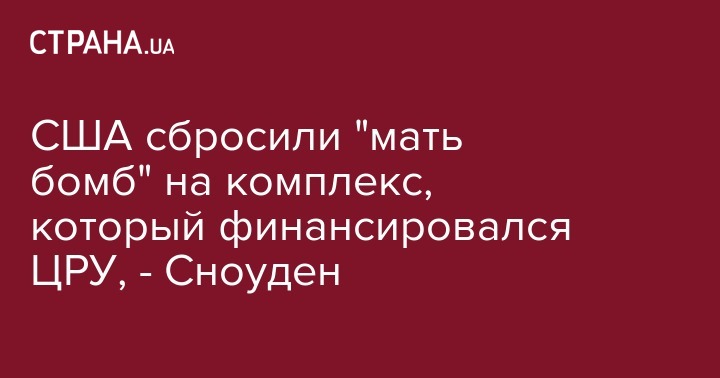 США сбросили "мать бомб" на комплекс, который финансировался ЦРУ, - Сноуден
