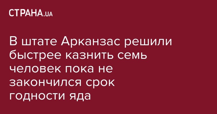 Власти штата Арканзас (США) постановили оперативно привести в исполнения смертные приговоры семерым осужденным из-за окончания срока годности используемого для "последней инъекции" яда. Казни собрались провести в течение двух следующих недель.