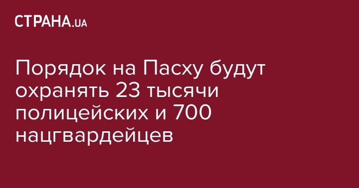 В Украине порядок в пасхальную ночь будут охранять больше 23 тысяч правоохранителей, 700 из них - нацгвардейцы. Об этом сообщает пресс-служба Нацполиции.