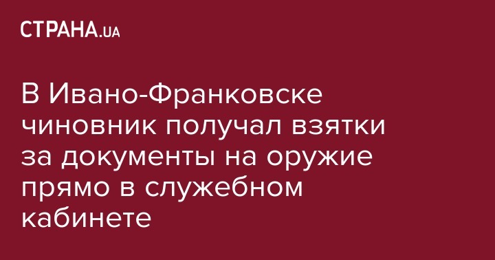 В Ивано-Франковской области разоблачен исполняющий обязанности начальника сектора разрешительной системы, который систематически вымогал взятки за получение разрешительных документов на оружие. Об этом пишет "Интерфакс-Украина".