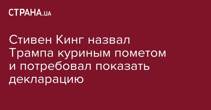 Известный американский писатель-мистик Стивен Кинг в очередной раз потребовал от президента США Дональда Трампа обнародовать свою налоговую декларацию. Об этом Кинг написал в своем микроблоге в Twitter.