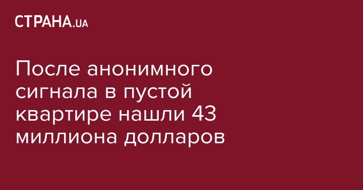 После анонимного сигнала в пустой квартире нашли 43 миллиона долларов