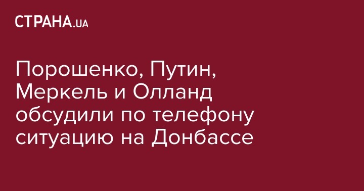 Петр Порошенко, Владимир Путин, Ангела Меркель и Франсуа Олланд провели телефонный разговор, во время которого в очередной раз обсудили ситуацию на Донбассе и выполнение минских договоренностей. Об этом сообщает пресс-служба Кремля.