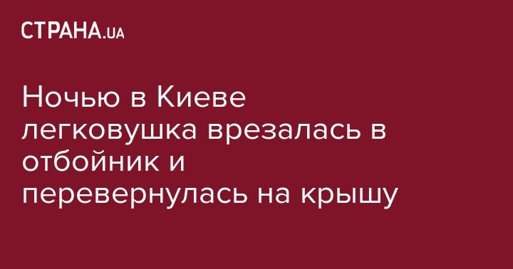 Ночью в Киеве легковушка врезалась в отбойник и перевернулась на крышу