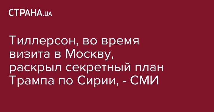 Госсекретарь США Рекс Тиллерсон во время визита в Москву раскрыл президенту РФ Владимиру Путину детали плана американского президента Дональда Трампа по вопросу Сирии. Об этом сообщает Associated Press со ссылкой на свои источники среди американских чиновников.