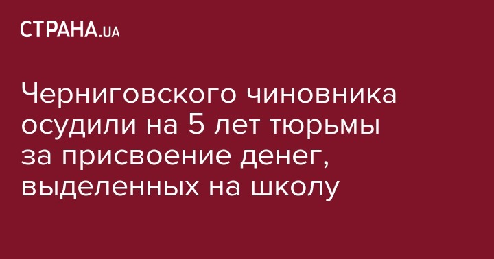 Черниговского чиновника осудили на 5 лет тюрьмы за присвоение денег, выделенных на школу