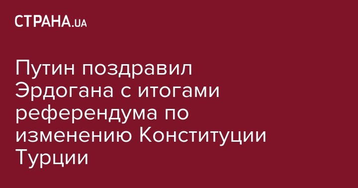 Президент России Владимир Путин в телефонном разговоре со своим турецким коллегой Реджепом Тайипом Эрдоганом поздравил его с успешным проведением референдума, который расширил полномочия турецкого президента. Об этом сообщается на сайте Кремля.